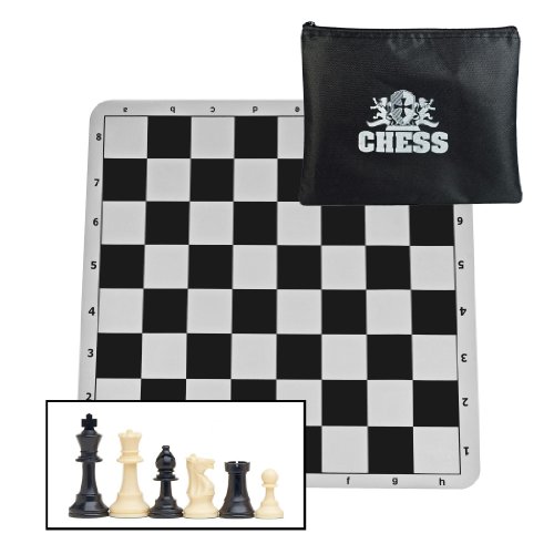 This is the most compact professional sized tournament chess set with weighted chess pieces. The silicone board folds into a small space for compact storage. The folded silicone board and the weighted chess pieces fit comfortably into a zippered pouch that measures 9.75Ó wide by 8Ó tall. The Staunton style chess pieces are made of plastic and are heavy weighted. The height and weight proportions are as follows: The KingÕs height is 3.75 inches tall and the base measures approximately 1.5 inches wide. The additional chess pieces have nice proportions to their size. The pieces are clearly distinguishable from one another due to the shapely Staunton style and the contrasting black and cream color with slightly satin finish. The chess pieces are comfortable and have nice balance and stability during play due to the weighted base. The silicone chess board has the algebraic notation and measures 19.75 inches wide and tall with 2.25 inch squares. The silicone board material is thin and dense. The board can be folded, then unfolded and laid out flat without any permanent creases in the playing surface. As time goes on, many tournament boards become dirty and soiled. Silicone also makes cleaning easy! Just rinse in the sink and gently rub with a little dish soap and a cloth. The board will be back to the original condition. Read more...